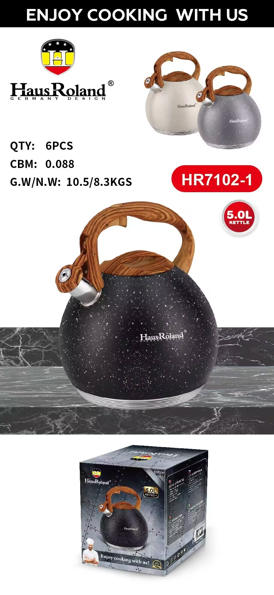 壶身:不锈钢201,0.7mm,壶身打logo 底部:0.5MM铝+2.0MM铁+0.5MM铝,430包底, 外部处理:喷大理石漆 内部处理:喷砂 盖子:尼龙盖喷木纹手感漆 配件:尼龙手柄喷木纹手感漆