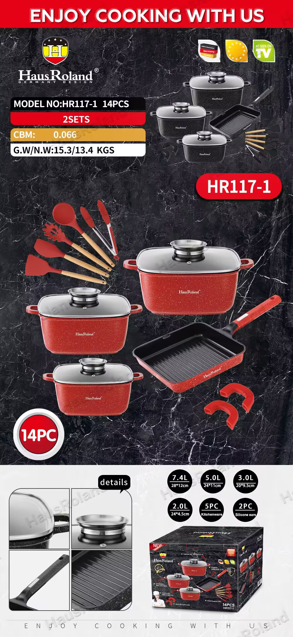 锅身:铝压铸,锅口6.0mm,锅身2.0mm 底部:复底,有底唛 外部处理:喷漆 内部处理:锅内喷陶瓷漆撒点 盖子:G型玻璃盖+不锈钢漏油盖珠 配件:压铸手柄喷硅胶手感漆
