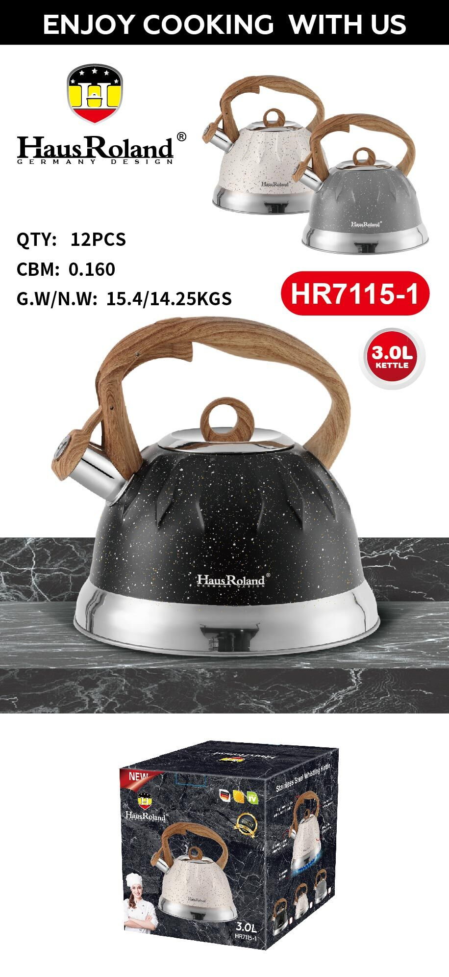 材料:不锈钢201,0.4mm, 底部:0.5mm铝+1.5mm铁+0.5mm铝, 430包底,有底唛,内底镜光 外部处理:上喷漆+撒点,下镜光 内部处理:砂光 盖子:不锈钢盖,尼龙盖滴 配件:尼龙手柄