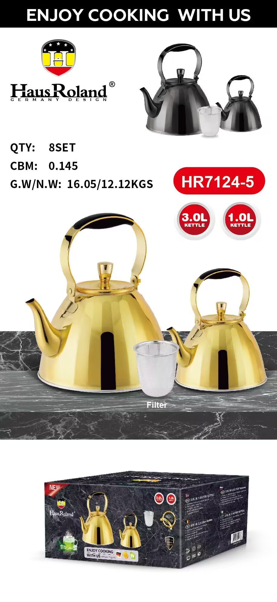 配件:不锈钢线手柄镀金加黑色硅胶