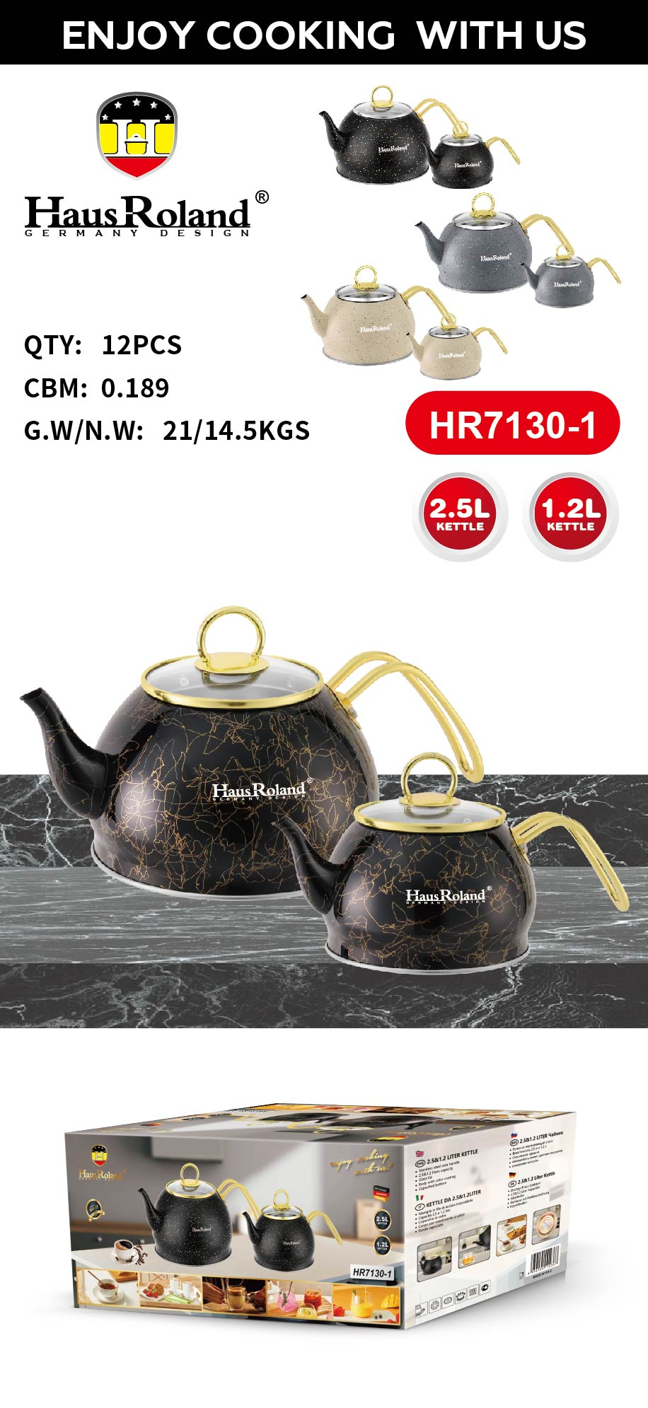 壶身:不锈钢201,0.4mm,壶嘴焊接,打logo 1.2L底部:430单底 2.5L底部:0.5mm铝+1.0mm铁+0.5mm铝,430包底,有底唛 外部处理:喷漆+撒2点(如图) 内部处理:砂光 盖子:玻璃盖喷漆+撒2点 配件:钢线手柄和盖蒂镀金