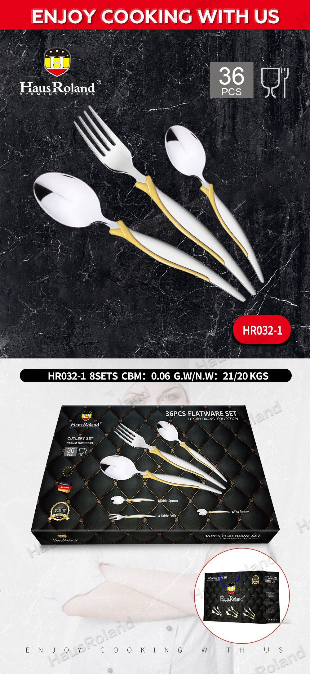 12个餐勺, 12个餐叉, 12个茶更, 外部处理:布伦光,退磁,金+砂(价格不含镀金),打钢唛(柄唛和更头唛)
