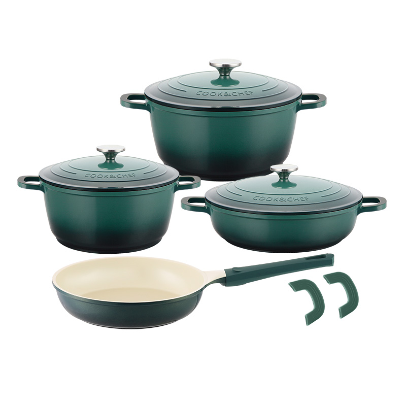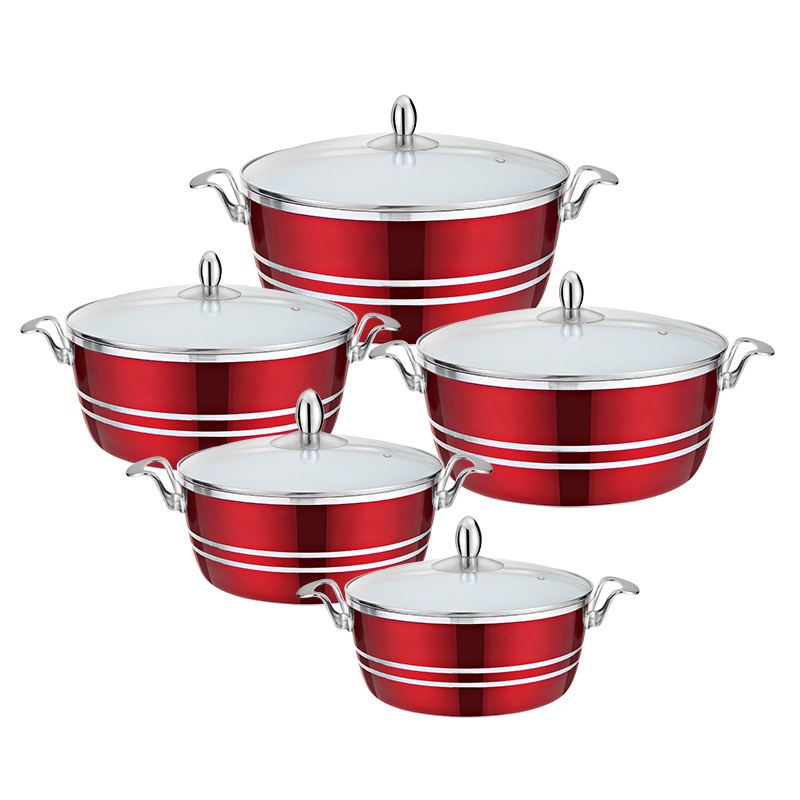 类型:10件套铝煎盘套锅 材料:铝压铸 认证:LFGB,CIQ,SGS 产地:中国广东 型号:GS-11080-10PC(HR178-1) 尺寸:18/24/28/28/28cm 盖子:玻璃盖 底部:复底 起订量:1200套