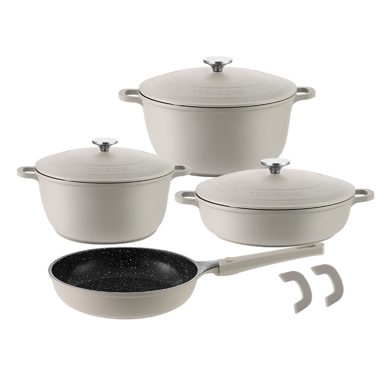 类型:9件套铝煎盘套锅 材料:铝压铸 认证:LFGB,CIQ,SGS 产地:中国广东 型号:GS-11049-9PC-1(HR147-3) 尺寸:24/28/28/24cm 盖子:压铸盖 底部:复底 起订量:1200套